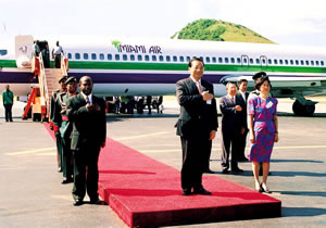 張院長由聖克里斯多福總理道格拉斯(Dr. Denzil DOUGLAS)陪同向儀隊答禮