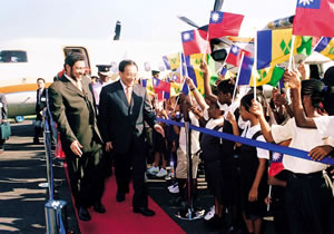 張院長由聖文森總理龔薩福﹙Dr. Ralph GONSALVES﹚陪同迎向前來歡迎的學生