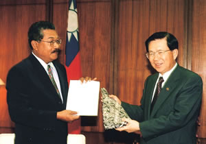 田部長接受帛琉新任駐華大使杜諾凡(Johnson TORIBIONG)呈遞到任國書副本